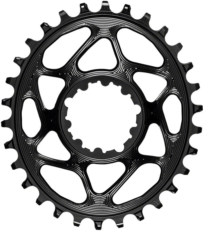 absoluteBLACK Oval Direct Mount 1x Chainrings for SRAM greatly improve traction and climbing abilities. They are designed for SRAM cranks that have a 3-bolt direct mount interface and removable spider. Direct mount chainrings provide significant weight savings over a standard spider and chainring combination. They are crafted from CNC machined 7075 aluminum and feature an anodized finish for exceptional durability. Ovality has been optimized for each chainring size, ranging from 10.2-14.4%, with timing of 110.5-116.3° after TDC (top dead center).