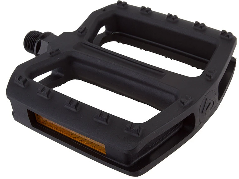 Squatch platform pedals have a low-profile, nylon construction and molded traction studs that are easier on the shin in the event of a crash or pedal slip.