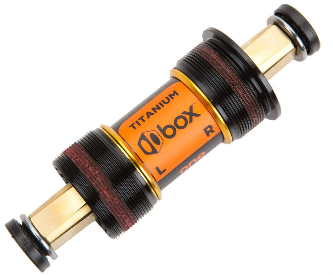 With precision sealed bearings and cold-forged, aluminum CNC machined cups, the Box One™ Titanium Square Taper bottom brackets are the best option for young BMX racers and other users. It is a three-piece crank in search of performance gains and weight savings. They have hollow, custom titanium-nitride-coated titanium spindles and carbon fiber center seals, helping keep the weight down between 185 and 190 grams (well below that of other square taper bottom brackets on the market). Other features include cups that are anodized black with anodized gold inner seals and a JIS tapered spindle that comes in either 108 or 113 millimeters.