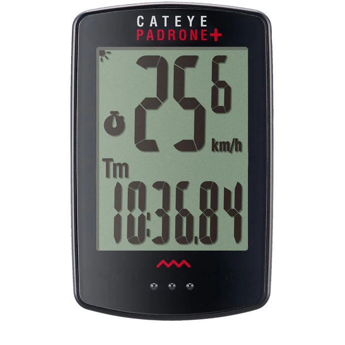 The Padrone Plus features the largest cycling computer display available, making it easy to see in all cycling conditions. Now with a backlight for all your nighttime cycling adventures. Developed from CatEye customer feedback, the Padrone Plus features the largest cycling computer display available with a backlight on the market today. From the downhill mountain biker to the farsighted cyclists, the Padrone Plus is ideal for anyone who wants to enjoy a squint-free ride and a fast, simple set-up. The new Padrone Plus CC-PA110W stands apart from the rest of the Padrone series with it’s dual-mode backlight, which can be programmed to operate as a either a part-time or full-time LED backlight. In the part-time setting, the backlight is activated for 5 seconds when the mode button is pressed to enable data to be viewed at a glance when riding after dark. When run in the full-time mode, the backlight is activated when motion is detected by the speed sensor and remains on until the rider comes to a stop, effectively working in conjunction with the rider to ensure that the display is always illuminated while the bicycle is in motion.