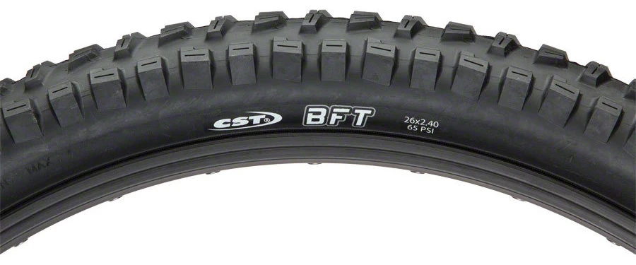 The CST BFT (Big Fat Tire) is a high-volume tire with an aggressive tread to provide outstanding traction on any trail.