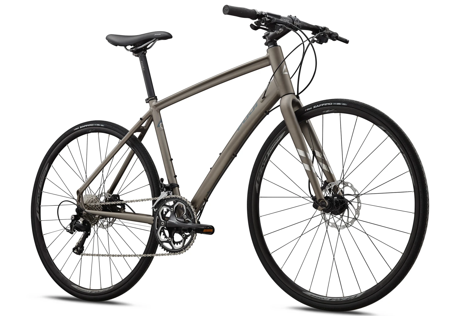 Fuji Absolute’s geometry strikes a balance between speed and comfort, making it great for the fitness-minded rider, or the urbanite looking to ride to work or run errands. Its A2-SL aluminum frame provides the right amount of stiffness for efficiency, with compliance built into key areas for all-day comfort. Its carbon fork keeps you on track with lightweight vibration damping to reduce upper body fatigue, while its aluminum wheels keep the rolling weight low and easily handle rough roads. You’ll barely notice hilly terrain thanks to a wide-range Shimano 105 drivetrain, a smooth-operating workhorse gear set that won’t let you down. Powerful Tektro hydraulic disc brakes give you the ultimate in confidence with all-weather braking and easy, one-finger actuation. And, comfort comes standard on the Absolute, thanks to touch points outfitted by Oval Concepts and Selle Royal.