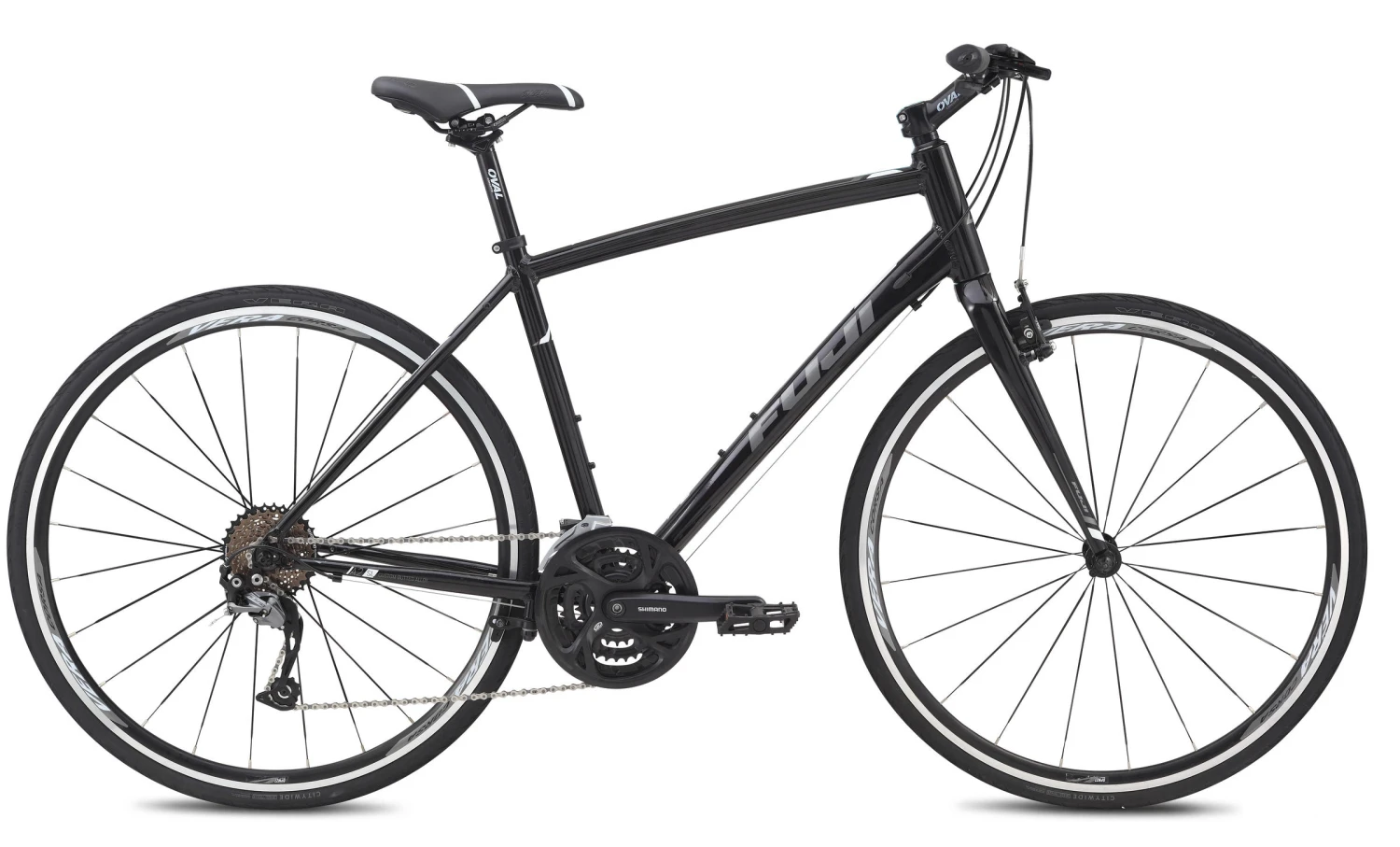 Fuji’s Absolute 1.7 is your go-to rig whether it’s time to get to work or it’s time to play. Its lightweight and zippy Fuji A2-SL aluminum frameset and 700c aluminum wheels offer effortless speed, nimble handling and easy climbing. Plus, this sweet ride sports a 27-speed Shimano drivetrain for climbing higher and riding longer, and confidence-inspiring linear-brakes for total control. You’ll love Fuji’s lightweight components and plush seat, too.