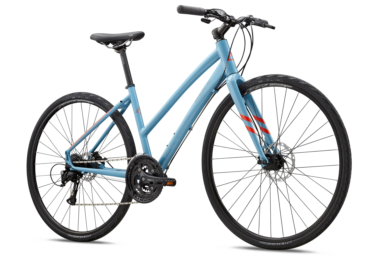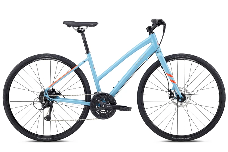 Fuji Absolute’s geometry strikes a balance between speed and comfort, making it great for the fitness-minded rider, or the urbanite looking to ride to work or run errands. Its A2-SL aluminum frame is lightweight and features a step-through design to make it easy to get on and off the bike. Its aluminum fork keeps you on track with lightweight precision, while its aluminum wheels keep the rolling weight low and easily handle rough roads. Hilly terrain will be a breeze thanks to a wide-range Shimano drivetrain that won’t let you down. Powerful Tektro mechanical disc brakes give you the ultimate in confidence with all-weather braking and easy serviceability. And, comfort comes standard on the Absolute, thanks to touch points outfitted by Oval Concepts and Selle Royal.
