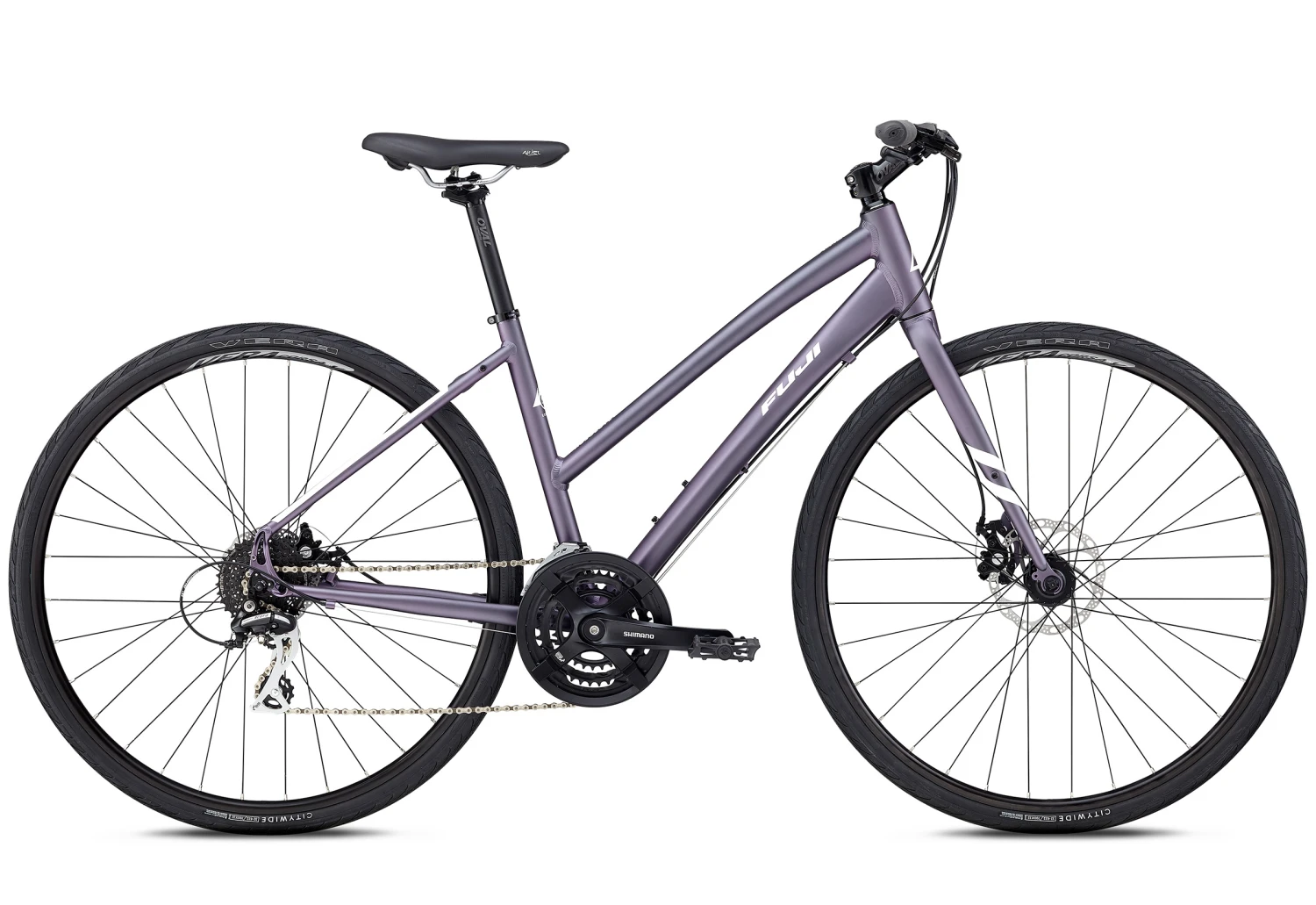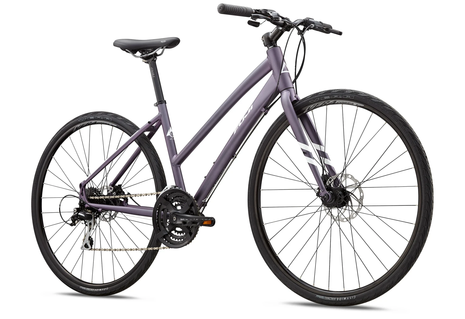 Fuji Absolute’s geometry strikes a balance between speed and comfort, making it great for the fitness-minded rider, or the urbanite looking to ride to work or run errands. Its A2-SL aluminum frame is lightweight and features a step-through design to make it easy to get on and off the bike. Lightweight aluminum wheels keep the rolling weight low and easily handle rough roads, and hilly terrain will be a breeze thanks to a wide-range Shimano drivetrain that won’t let you down. Powerful Tektro mechanical disc brakes give you the ultimate in confidence with all-weather braking and easy serviceability. And, comfort comes standard on the Absolute, thanks to touch points outfitted by Oval Concepts and Selle Royal.