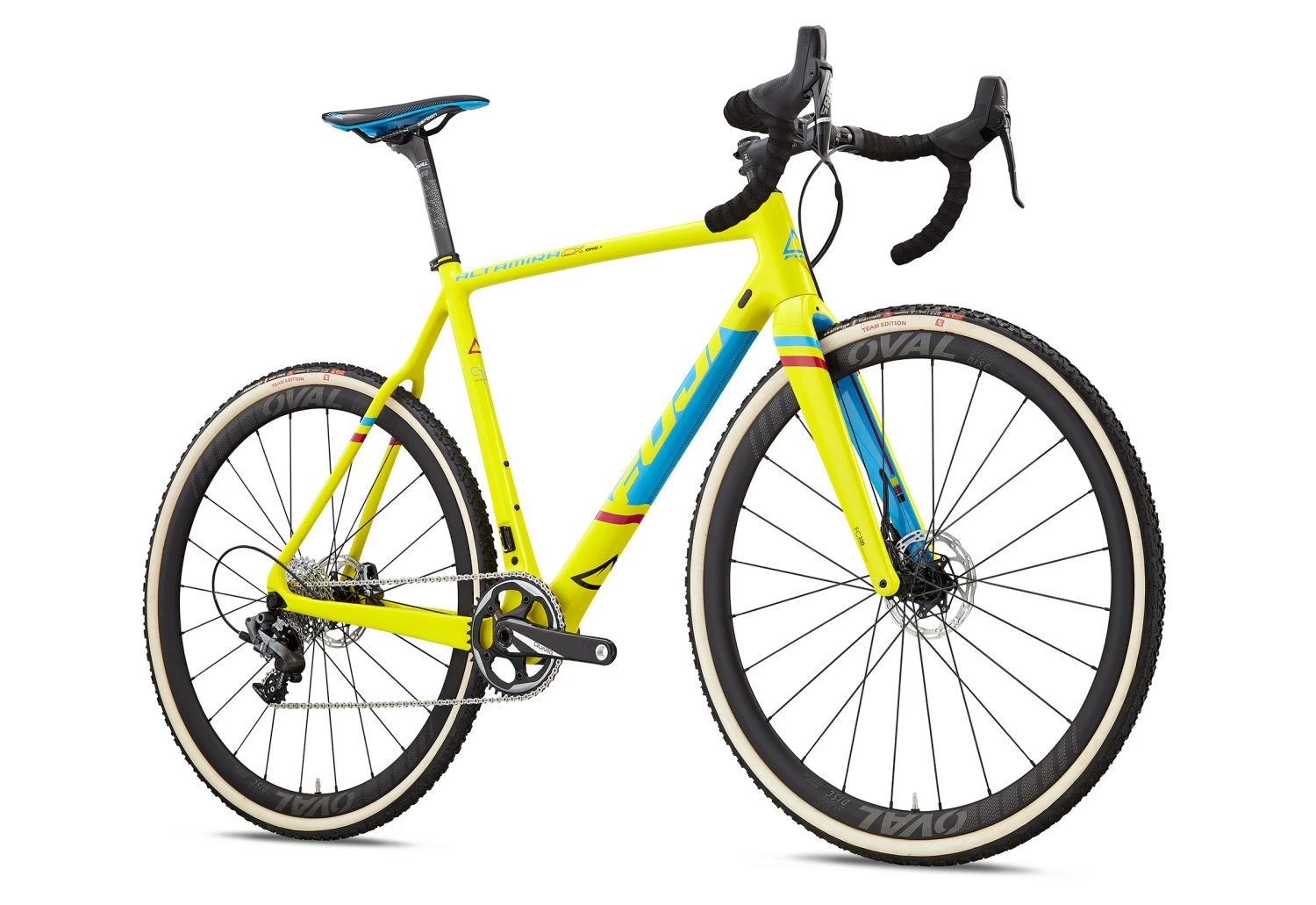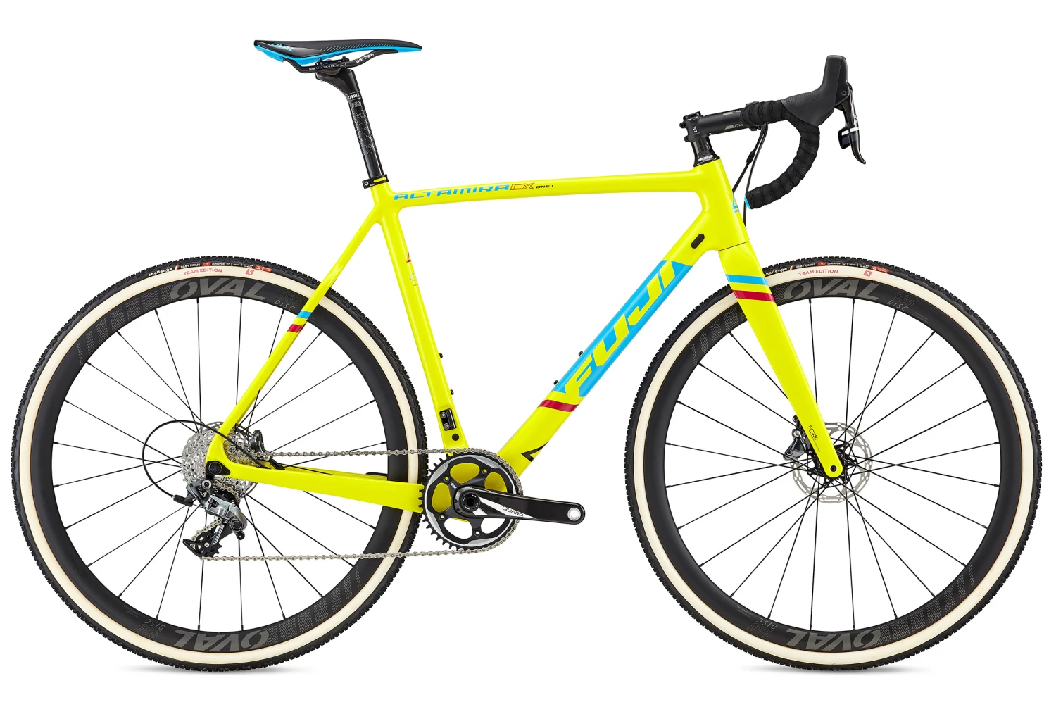 Constructed of ultra high-modulus C10 carbon with an excellent strength-to-weight ratio, the Altamira CX 1.1 is here to give you a lightweight, fast ride over muddy courses, snaky sandpits, and tricky barriers. The flat top tube shape allows for easy shouldering, while an oversized downtube and chainstays increase torsional stiffness for superior pedaling efficiency. Its Press-Fit bottom bracket increases frame stiffness, reduces drivetrain flex, and maximizes power transfer. Fuji’s FC-330 full-carbon fork features a tapered steerer and 12mm thru-axle for increased rigidity and greater steering precision. Oval Concepts 935 carbon tubular wheels defy inertia, yet hold up to CX abuse, wrapped in Challenge’s legendary Baby Limus sew-ups that supply outstanding traction and buttery-smooth efficiency. SRAM’s Force 1 drivetrain efficiently turns your sweat into podium-bound speed, while flat-mount Force hydraulic disc brakes stop on command in any conditions. Carbon bars, seatpost, and saddle rails from Oval Concepts round out the top-tier spec on this no-compromise cyclocross machine.