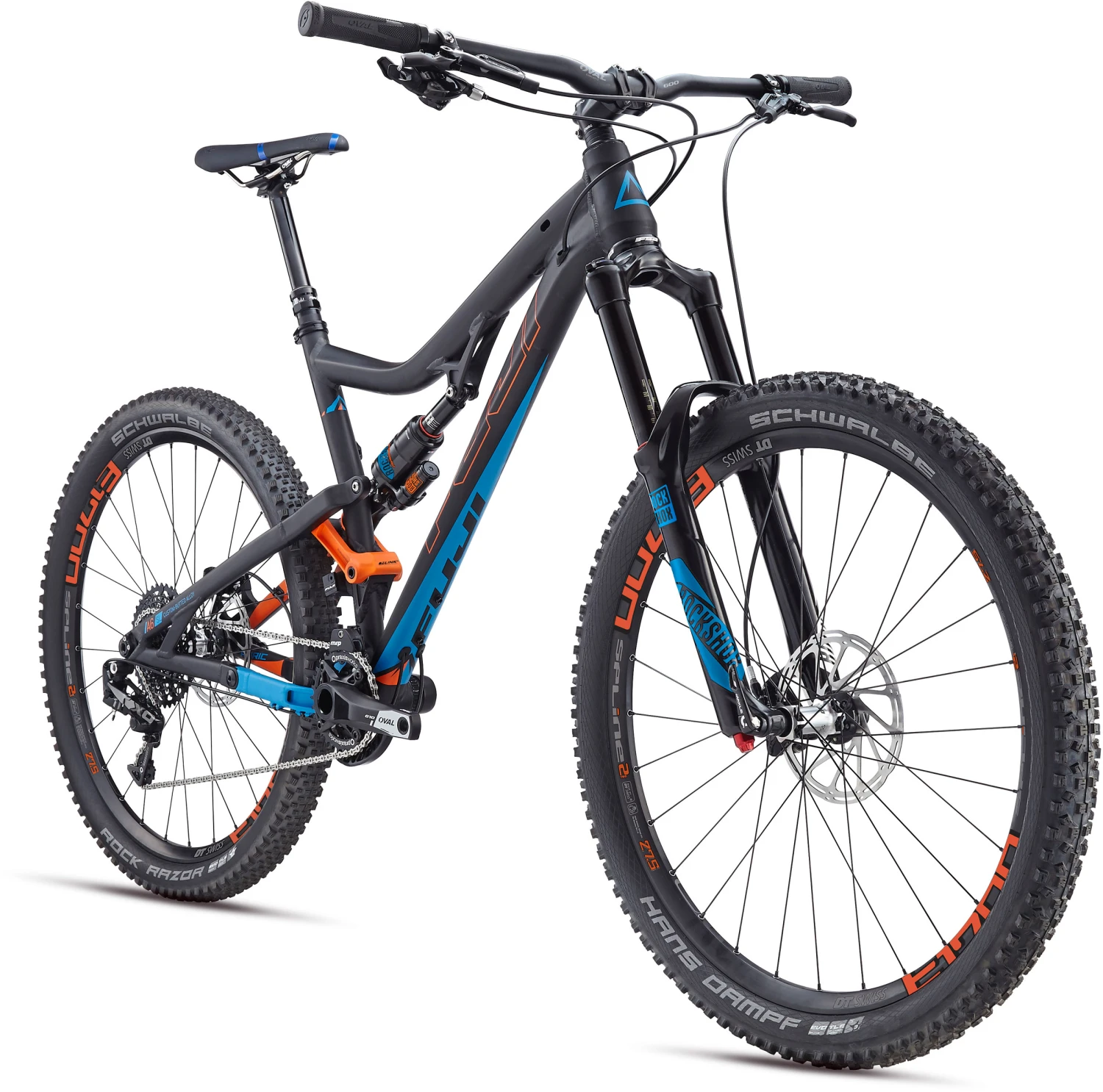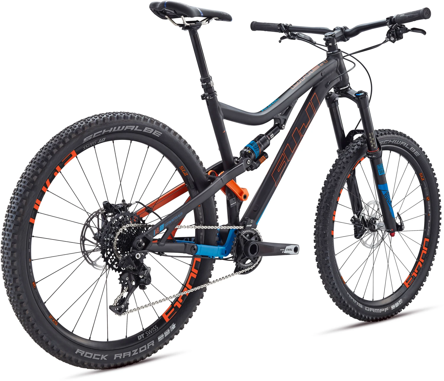 The ultimate in full-suspension efficiency, the Fuji Auric 27.5 1.1 offers climbing expertise paired with aggressive descending capabilities. The A6-SL aluminum frame features 160mm of MLink rear suspension that lets you fly up climbs as quickly as you can shred down, while a RockShox Pike RCT3 fork with 160mm of travel will have you conquering challenging lines both up and down the trail. The 15mm thru-axle and tapered steerer provide precise and confident handling over even the rootiest sections. The 27.5-inch wheels combine the fast-rolling qualities of bigger wheels while keeping the wheelbase short for a nimble, agile ride. SRAM’s X01 1 x 11-speed drivetrain delivers maximum efficiency across the entire cassette, while the wide-range of gears let you effortlessly spin up even the steepest climbs. You’re also armed with SRAM’s Guide RS hydraulic disc brakes that allow for authoritative braking as well and excellent speed modulation on steep descents. A sleek Oval Concepts aluminum cockpit and RockShox Reverb dropper round out the build on this top-of-the-line trail machine.