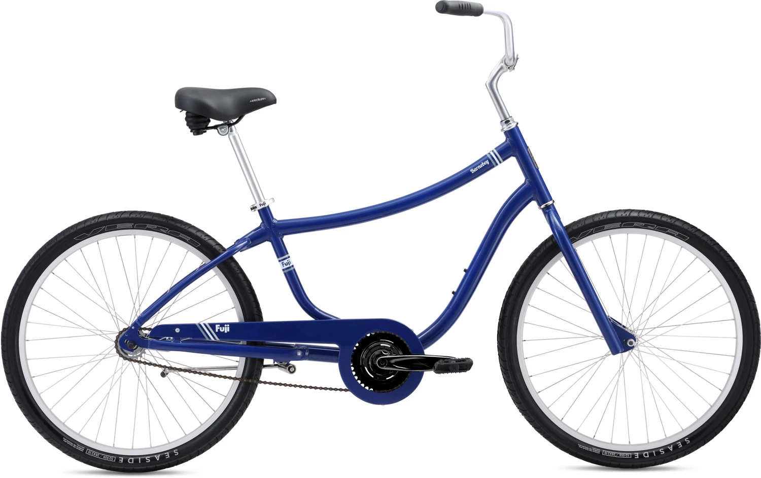 Fuji’s Barnebey 1 is a pure cruiser that lets you enjoy a laid-back, comfortable feel wherever you go. Fuji’s lightweight aluminum frame is made with feet-forward technology and a stable, low center of gravity that allows you to comfortably place your feet on the ground while seated for easy starting and stopping. Go ahead and throw on a tuxedo, the chainguard will protect you. And, enjoy the plush Selle Royal Metropolitan Gel seat and nimble aluminum wheels with wide Vera Seaside tires for smooth, comfortable riding.