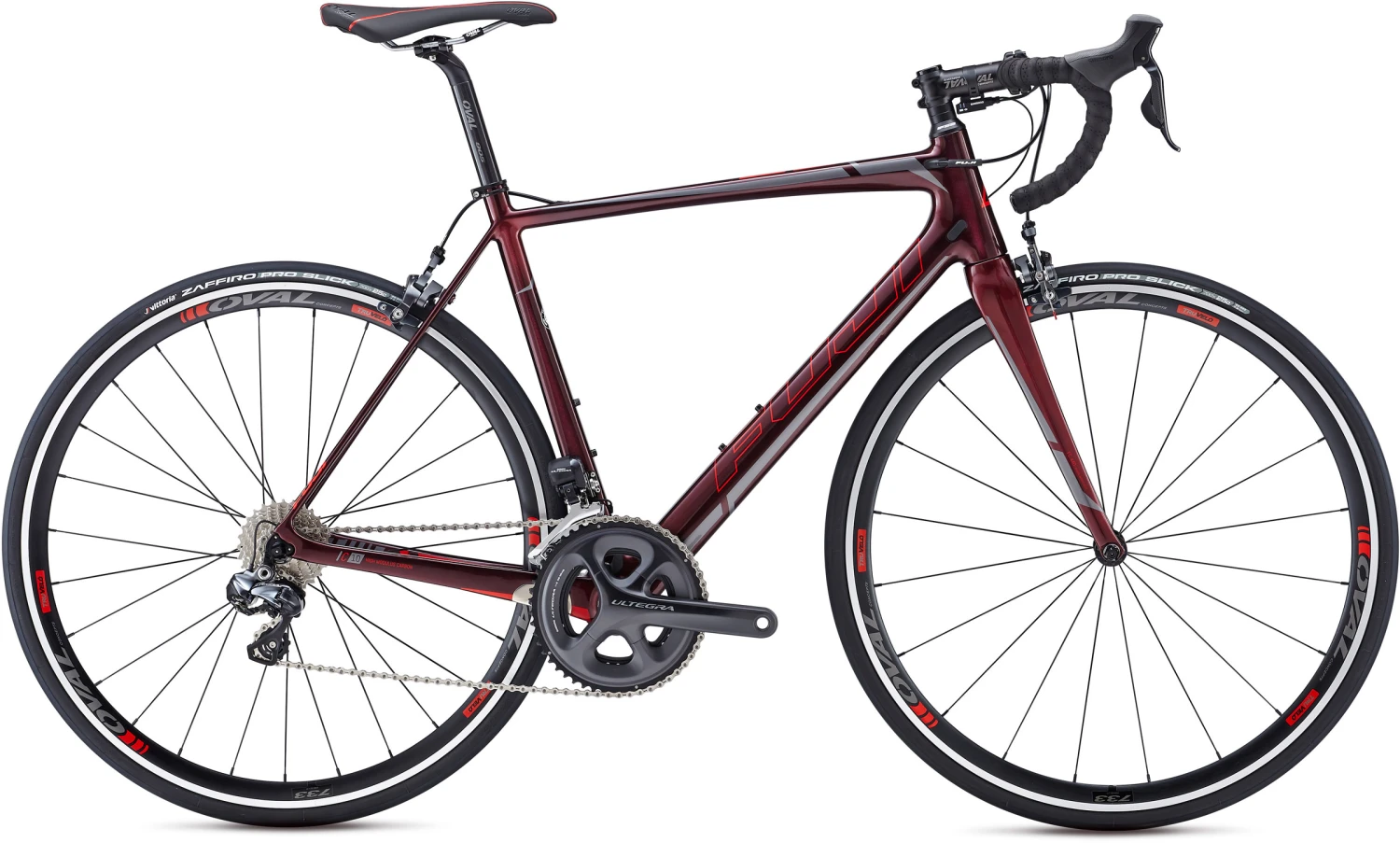 Perfect for flying up climbs as well as throwing down big watts in a sprint, Fuji’s SL 2.1 is incredibly light and unbelievable stiff. Born out of the quest to create one of the lightest bikes in the world, the featherweight C10 ultra high-modulus carbon frame carries you up steep climbs and down sharp, sinuous descents with supreme confidence. A tapered full-carbon fork adds minimal weight and precise, controlled handling through technical criteriums and sweeping corners on the road. An 11-speed Shimano Ultegra Di2 electronic drivetrain provides silky smooth, accurate shifting with the mere touch of a finger, while Oval Concepts aero aluminum wheels, wrapped in grippy Vittoria Zaffiro Pro Slick tires, roll smoothly and accelerate with ease. Fuji rounded out the SL with an Oval Concepts aluminum bar and stem that keep the weight down, while the sleek R500 saddle lets you stay comfortable while others suffer on your wheel.
