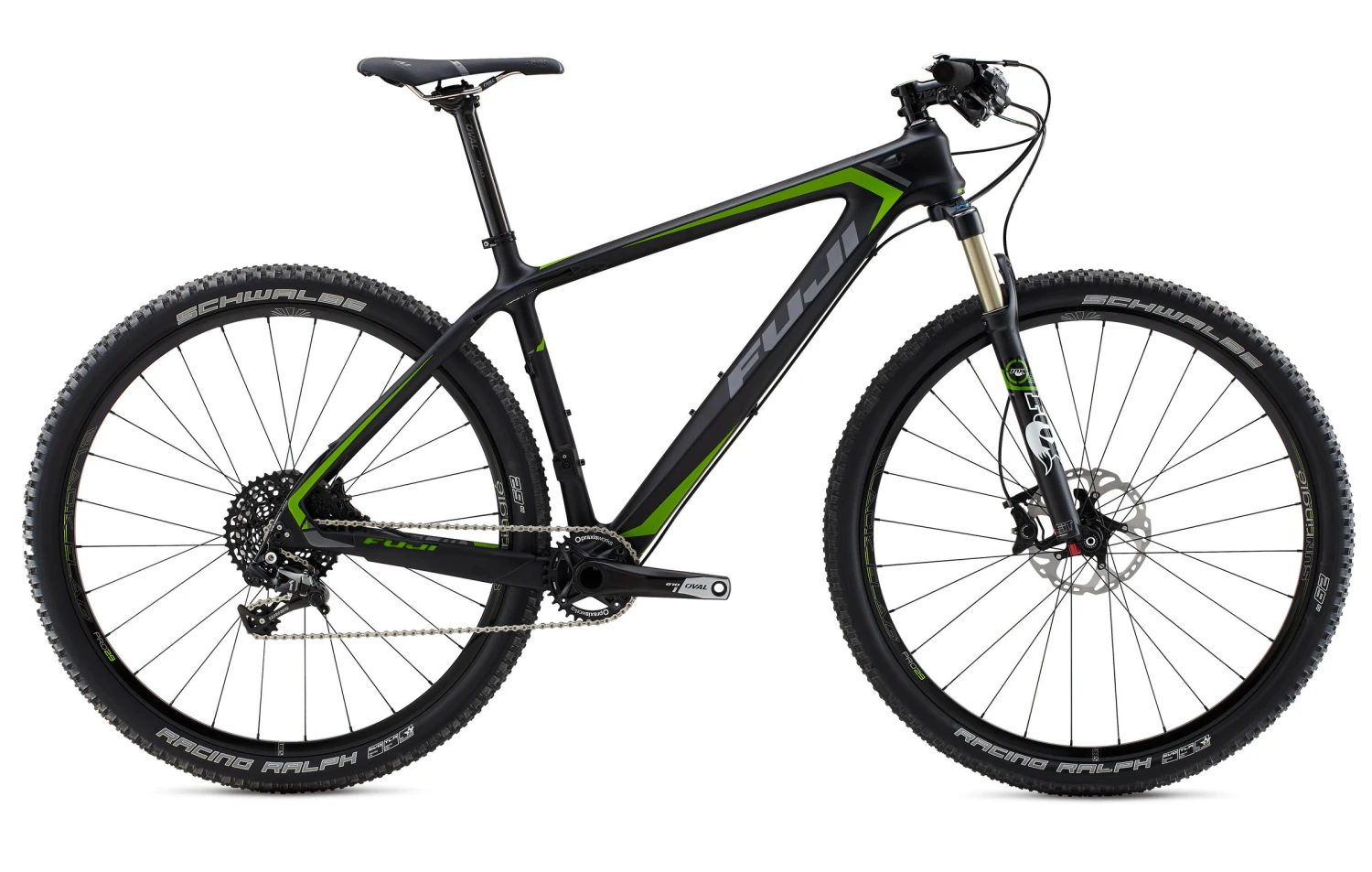 For victory, just add pedals! Built from Fuji’s super-light, high-modulus C15 carbon, the SLM 29 1.3 is a pro-level race bike that boasts the speed you need to dominate every XC ride and race. Its carbon frame is constructed for stiffness and power transfer with extra compliance in the back. The result? A stellar steed that keeps pulling away on even the toughest trails. Up front is Fox’s top-end 32 Float Factory fork with 100mm of smooth, tunable travel that gives you the edge on technical singletrack. Lightweight Sun Black Flag Pro wheels provide easy acceleration and quick engagement, and the Schwalbe Racing Ralph tires mean this rig will rail through the corners. Plus, SRAM’s 1×11 X01 drivetrain provides positive, crisp shifting, while the XT brakes offer powerful speed control. Finishing off the build are Oval’s stem, seat, seatpost and wide bars that are tough yet go-all-day light, too.