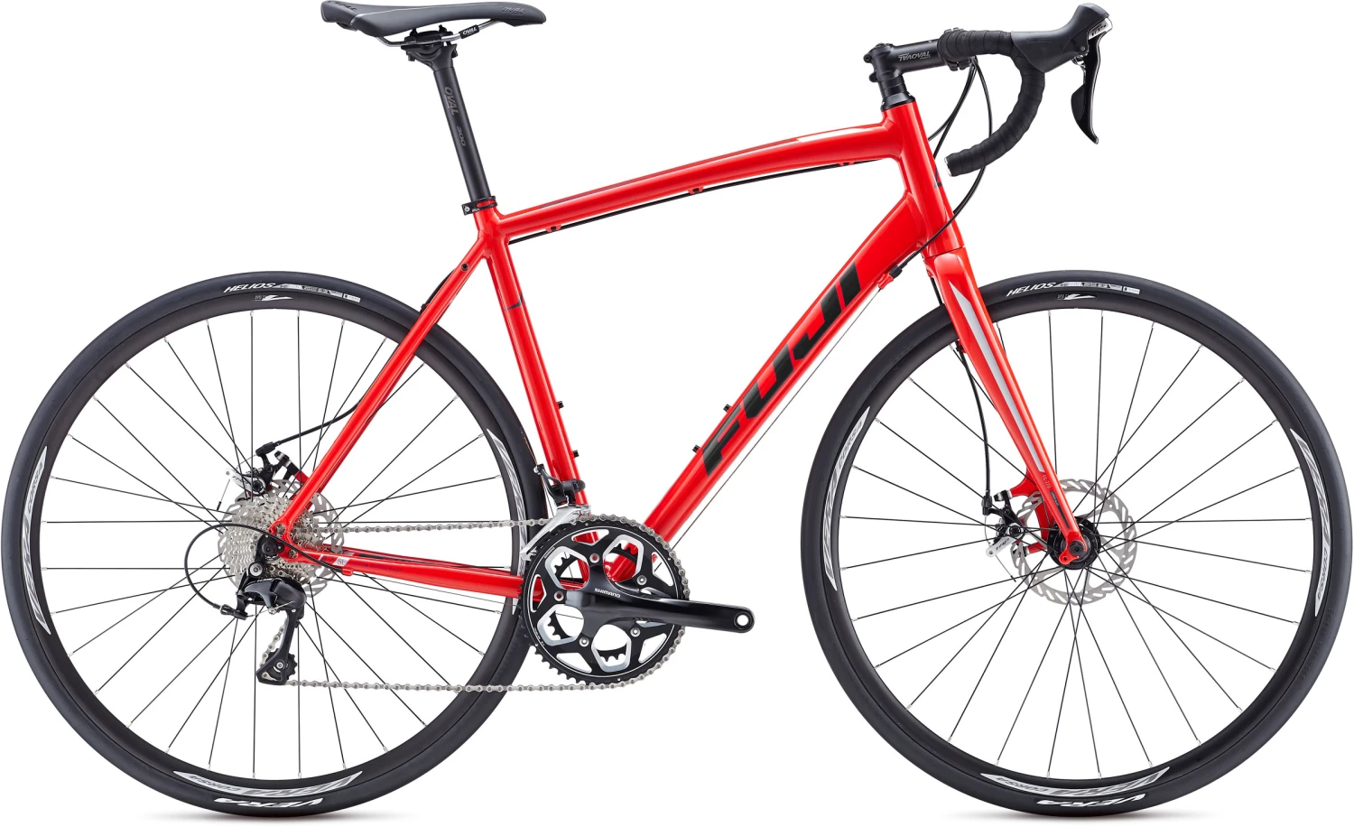 Performance and comfort meet with the Fuji Sportif 1.3. The tall head tube on the compact double-butted aluminum frame is easy on your back while the disc carbon fork and extra-long wheelbase ensures your ride is stable and secure regardless of the route. A smooth-rolling Vera Corsa wheelset, mounted with a set of grippy Vera Helios tires, will smooth out the imperfections as you glide over tar-grooved pavement. Shimano 11-speed 105 shifters and drivetrain provide immaculate shifting while the compact crankset and 11-32 cassette offer a plethora of gears to choose from when the road tips skyward. Explore your speed and really open it up on the descents knowing that TRP’s Spyre disc brakes stop on a dime in all weather conditions. Quality components from Oval Concept make up the stem, saddle, seatpost and handlebar.