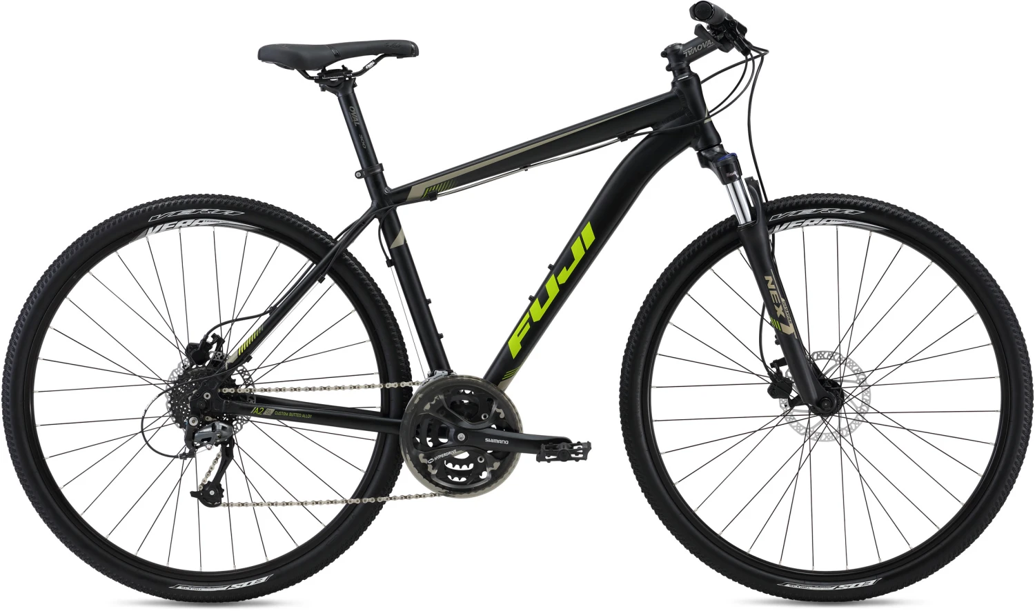Add a little dirt to your regular fitness routine with Fuji’s Traverse 1.5 Disc. No matter where you ride, the nimble aluminum frame and fast-rolling 700c wheels get you there with ease, while the Suntour suspension fork smooths out any bumps along the way. Run through the wide range of gears in quick, close succession thanks to Shimano’s Altus shifters and climb steep hills with ease thanks to the wide-range 24-speed drivetrain. Descend anything from a steep city street to an uneven dirt roads at top speed knowing the Tekro hydraulic-disc brakes have you covered. Puncture resistant, 38mm-wide Vera EOS tires provide traction on dirt, wet pavement and through corners. Sleek components from Oval Concepts let you ride in style while the P300 seat keeps you comfortable for seasons to come.
