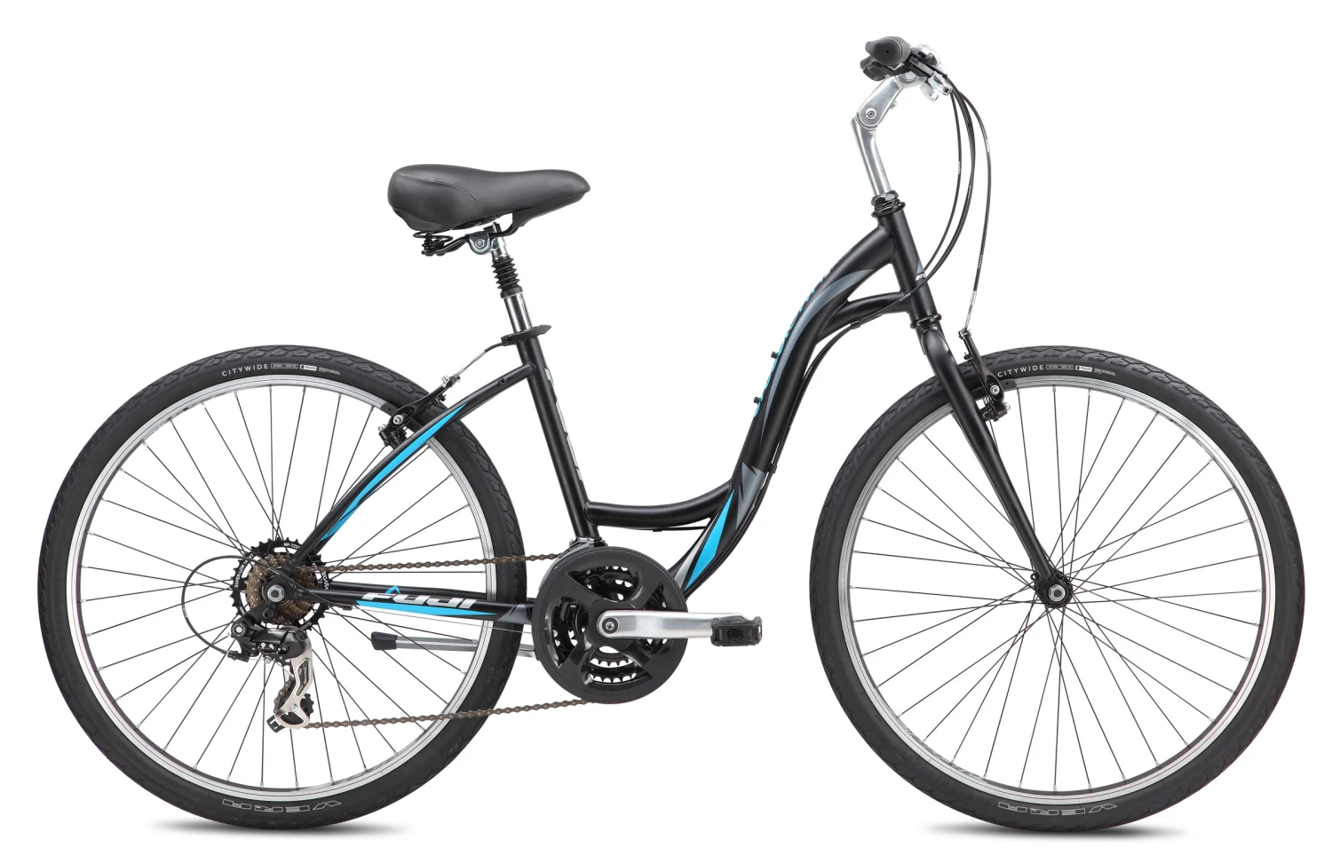 Take a spin on the Women’s Crosstown 26 2.1 LS and experience the fun, fitness and convenience of a comfort bike. It boasts a lightweight Fuji Elios 1 steel frame and a casual, upright riding position for miles of pedaling enjoyment. Its 21-speed Shimano drivetrain gets you up to speed quickly and handles hills with ease, while the reliable aluminum wheels with versatile tires keep you running straight and true. And, the cushy saddle sits atop a suspension seatpost for sublime comfort on every ride.