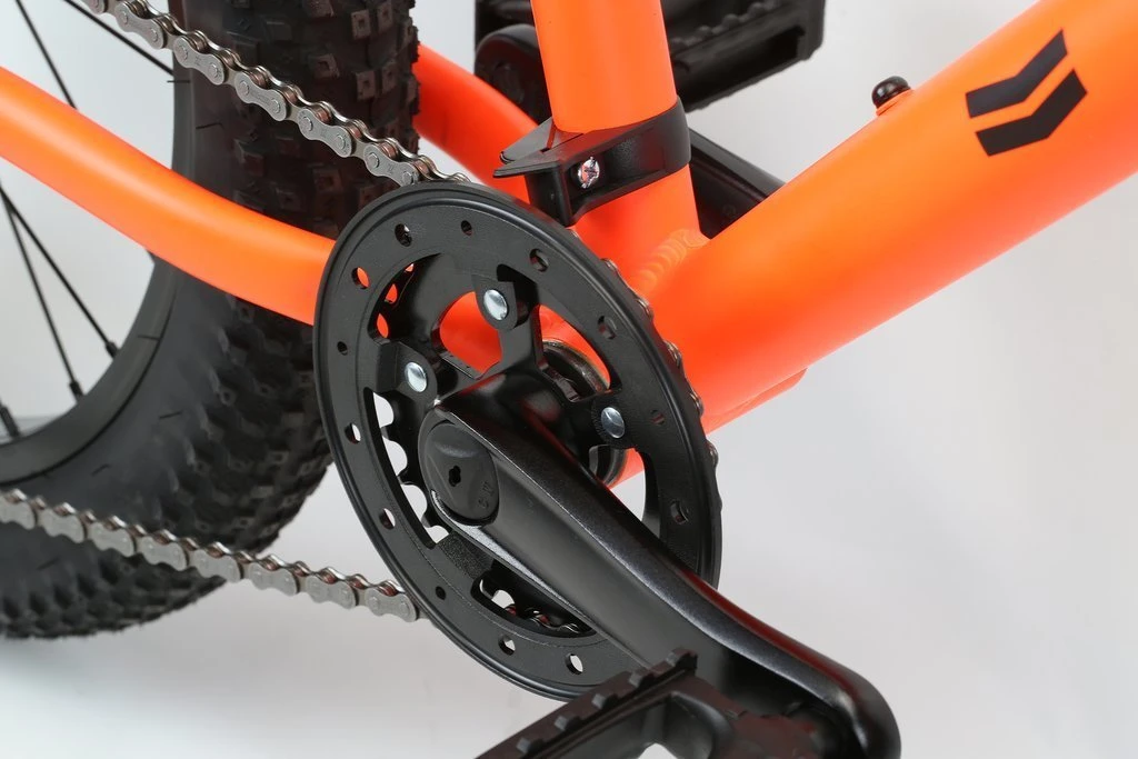 Who said you have to be an adult to experience a plus size ride? Not us…The Flightline 20 Plus features fat bump-absorbing 2.6″ MTB tires matched to 32-hole alloy rims. The FL 20 Plus is surprisingly light, thanks to its aluminum frame and rigid alloy fork. A Revo 7-speed twist-shifter keeps shifting simple and intuitive with a Shimano Tourney rear derailleur protected against accidental mishaps by a bolt-on-guard. The FL 20 Plus is ready to hit the trails…