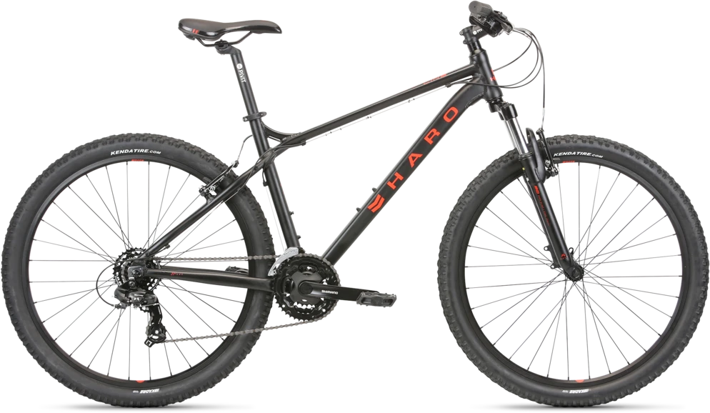 The Flightline One 27.5 model features an X6 series alloy frame with an internal head tube mounted to a Haro suspension fork with 80mm of travel to smooth out all the bumps. It features 27.5″ wheels, which are slightly taller and faster rolling than the 26″ size, made from alloy double wall rims fitted with a Shimano cassette rear hub, and 2.2″ wide tires with multi surface a tread pattern. The FL 27.5″ is ideally suited for all-around riding and an introduction to fire-roads and easy MTB trails.