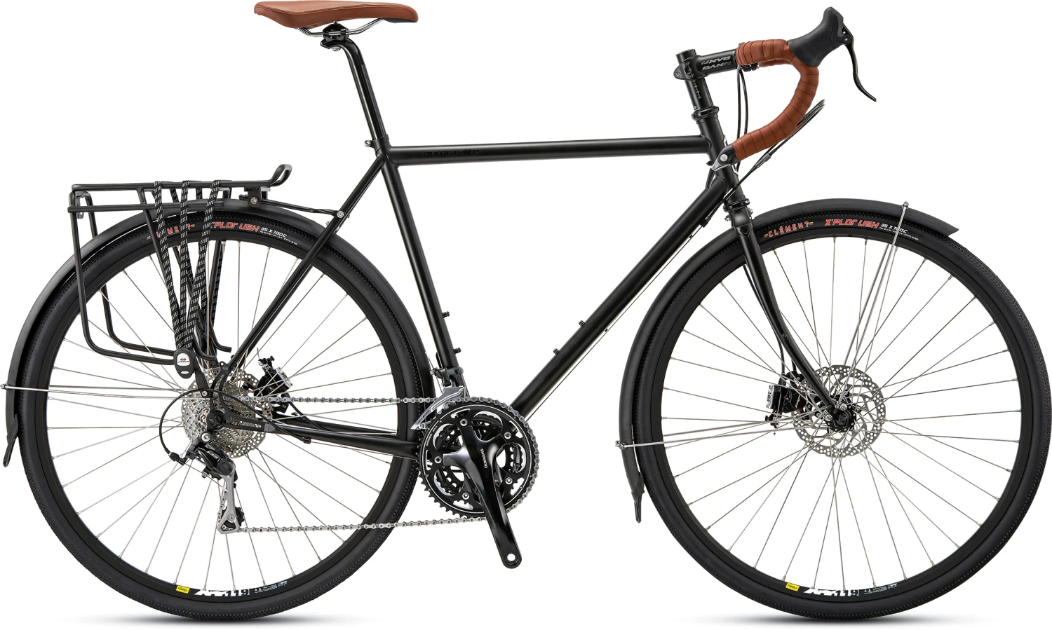From morning commutes to afternoon spins to tours across the country, Jamis’ Aurora Elite has the versatility you need. It boasts a smooth-riding Reynolds 631 chromoly frame and lugged chromoly fork for endless comfy miles. You’ll love how the Shimano 30-speed drivetrain with Dura-Ace bar-end shifters humbles the hills. Tektro HYRD disc brakes take control on the descents and the smooth, reliable Mavic wheels spin fluidly. Full-coverage fenders, a rear rack and a chainstay spoke carrier show off this bike’s utilitarian side. Plus, this sweet rig comes with cushy Clement puncture-resistant tires and a plush touring saddle that keep you smiling on every ride.