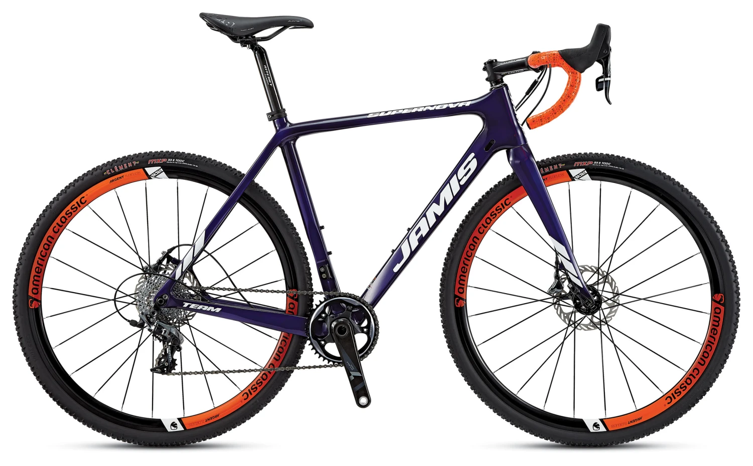 Over the barriers, through the mud, to the podium we go. On a Jamis Supernova Team of course. The carbon fiber frame and fork are guaranteed to have you reigning in the wet and muddy stuff. And with a parts package featuring a fast and simple 1×11 SRAM Force setup, Clement tires, and tubeless-ready Alex rims, you’re ready for race day. Front and rear thru-axles keep the bike stiff and fast, while Fizik and Ritchey components ensure comfort at the your contact points.