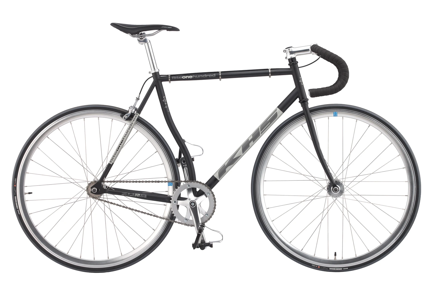 KHS’s Flite 100 is equally at home on the banked turns of a velodrome and blasting around back alleys. Its KHS double-butted chromoly frame features a curved seat tube to tighten up the wheelbase, making it hyper-snappy for slingshot sprints. The stiff, deep section wheels feature a flip-flop rear hub and bolt-on high-flange hubs front and rear to create low weight and stiffness that maximize acceleration when attacking, fending off a race pursuit, or outrunning a territorial Schnauzer. And, the aluminum track-specific crank and handlebar give you strong, rigid points of contact so all of your body’s input translates directly to speed. Experience the unfettered excitement of a track bike on the Flite 100.