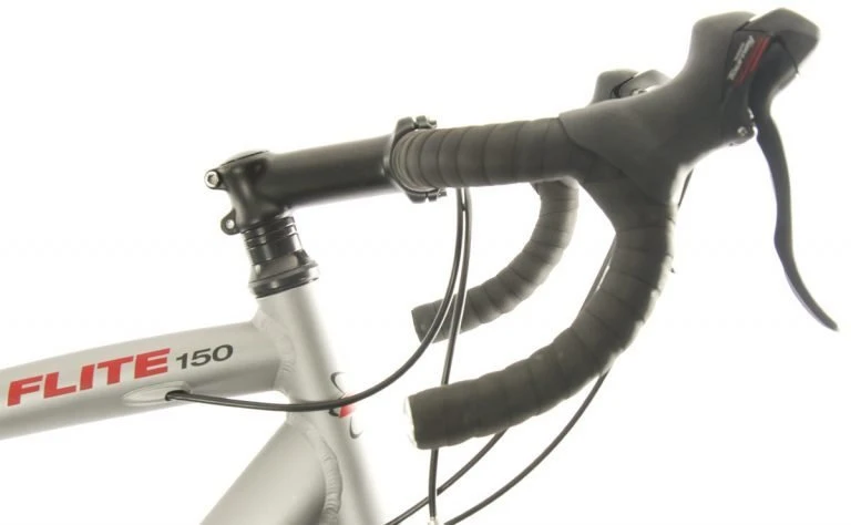 The Flite 150 is a great entry into the sport of road cycling thanks to value-minded components and a lightweight alloy frame. It features alloy double-wall rims wrapped in 700 x 28c road tires, a Shimano 14-speed drivetrain with integrated shift/brake levers, and an alloy handlebar with compact dimensions for easy transitions from the hoods to the drops.