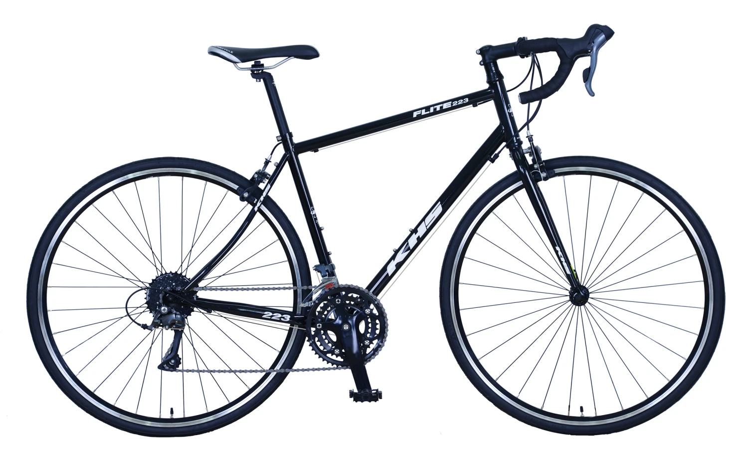 The Flite 223 brings the smooth riding characteristics of Chromoly steel for your cycling pleasure. It features alloy double-wall rims wrapped in 700 x 28 road tires, a Shimano Claris 24-speed drivetrain with integrated shift/brake levers, and an alloy handlebar with compact dimensions for easy transitions from the hoods to the drops. A padded Ultracycle saddle, dual-pivot brakes, and Wellgo pedals top this build.