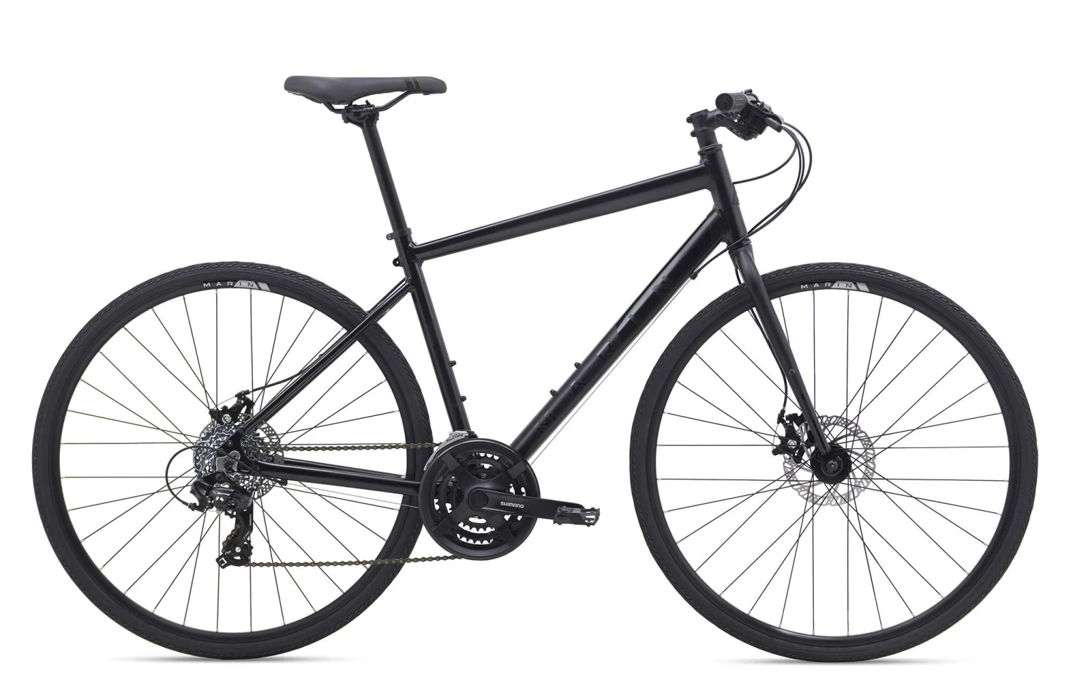 The Marin Fairfax is built for the flat-bar fitness road rider, commuter, or those looking to take advantage of bike path recreation. It features a lightweight aluminum frame, smooth-riding Chromoly fork, and mounts for adding a rack and fenders. Marin’s sport fitness geometry gives the bike a light and lively feel while maintaining stability and control. Disc brakes provide smooth, controlled stopping power in all conditions with minimal maintenance, while quality Shimano drivetrain components and a wide gear range increase the bike’s capability over a variety of terrain. The larger volume tires help smooth out rough roads and up the traction a bit for a more confident ride. The Fairfax rolls efficiently on 700c double wall rims, completing this durable package that’s ready for your next series of road explorations.