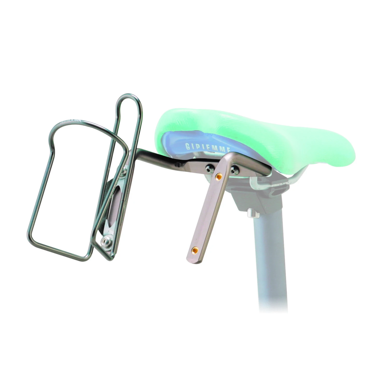 – Behind-saddle mounted holder for two extra water bottle cages, or one bottle
