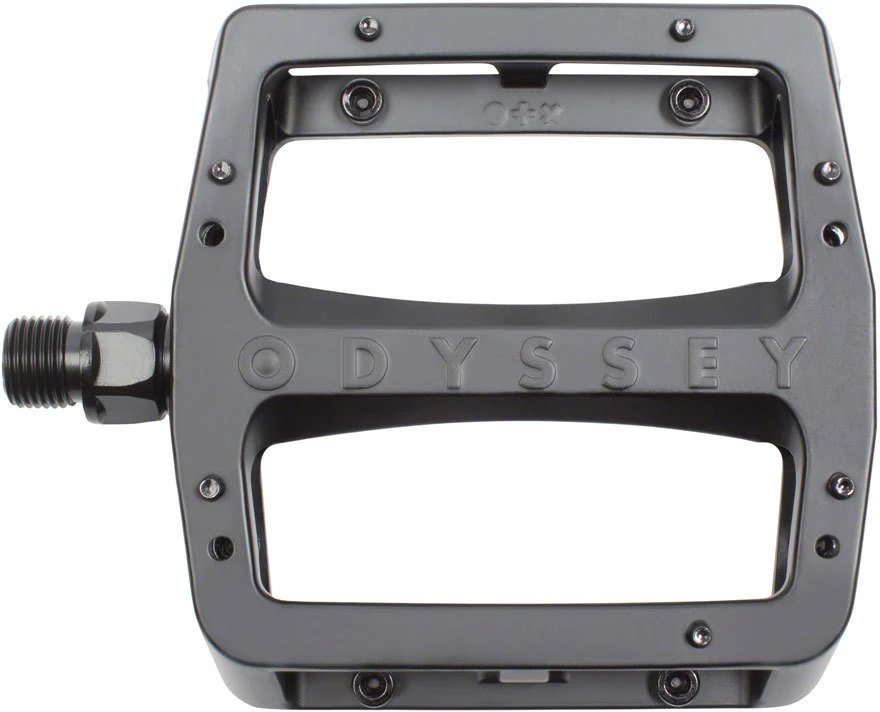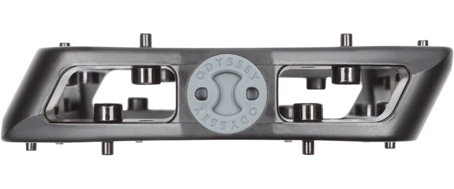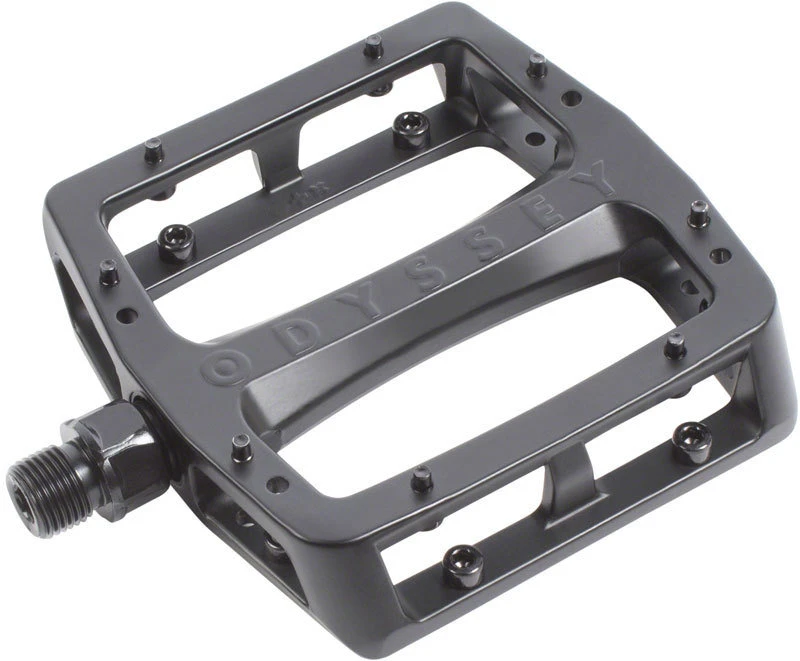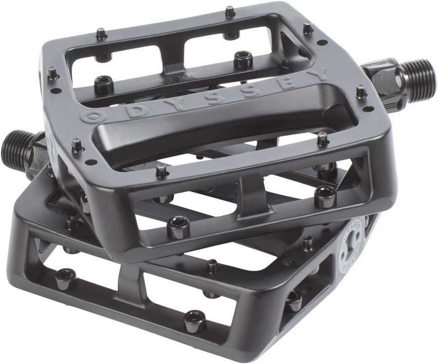 The Tom Dugan signature Grandstand pedals feature a slim design to keep feet close to the axle, and a wider, dual-concave platform.