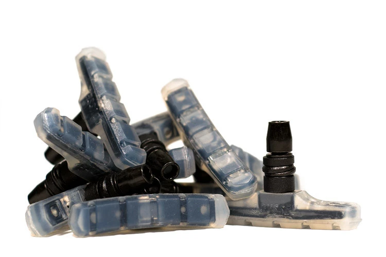 The Slim by Four is a BMX-specific brake pad with a symmetrical shape designed for both forwards and backwards braking. A custom inner frame helps to stiffen the pad and prevents excessive braking power from being lost to flex.