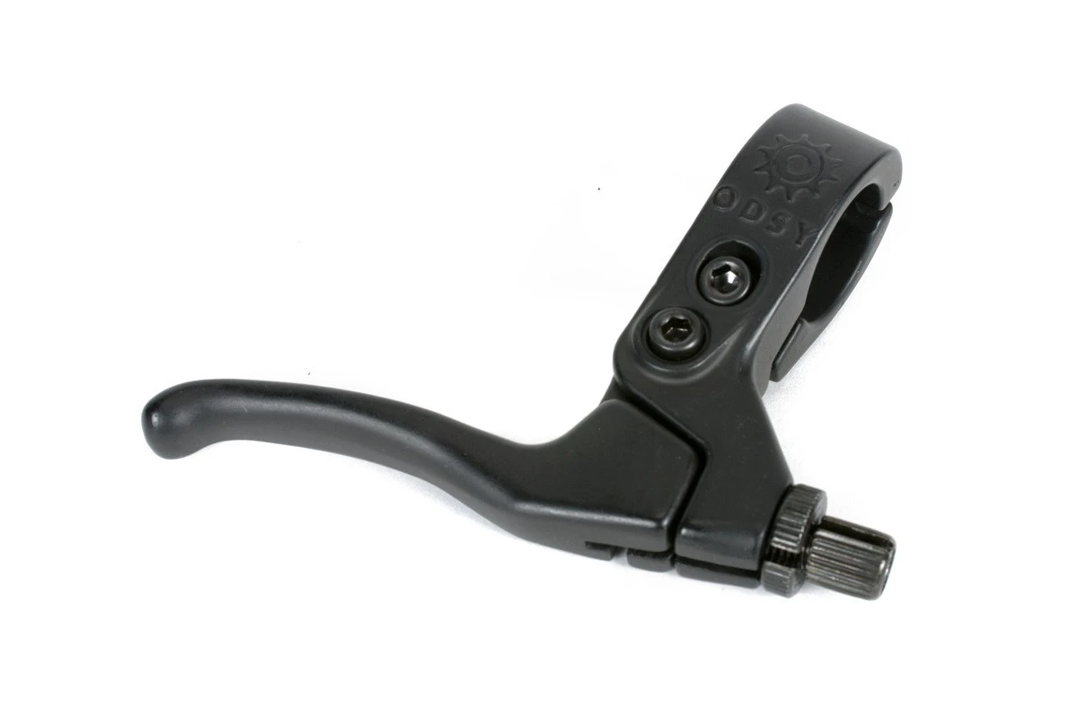 One of the most important goals that Odyssey had when they sat down to work on new braking designs was to make the whole system easier to install (and remove) without sacrificing performance. They also wanted to be sure that every component would be very affordable. The Springfield lever is easy to install and remove without having to wrestle grips on and off. An ordinary hinged clamp can be bulky and expensive so a new clamping design made specifically for die-casting was used. This approach keeps the lever reliable and affordable. The lever handle is the same comfortable shape as the proven Monolever Medium blade.