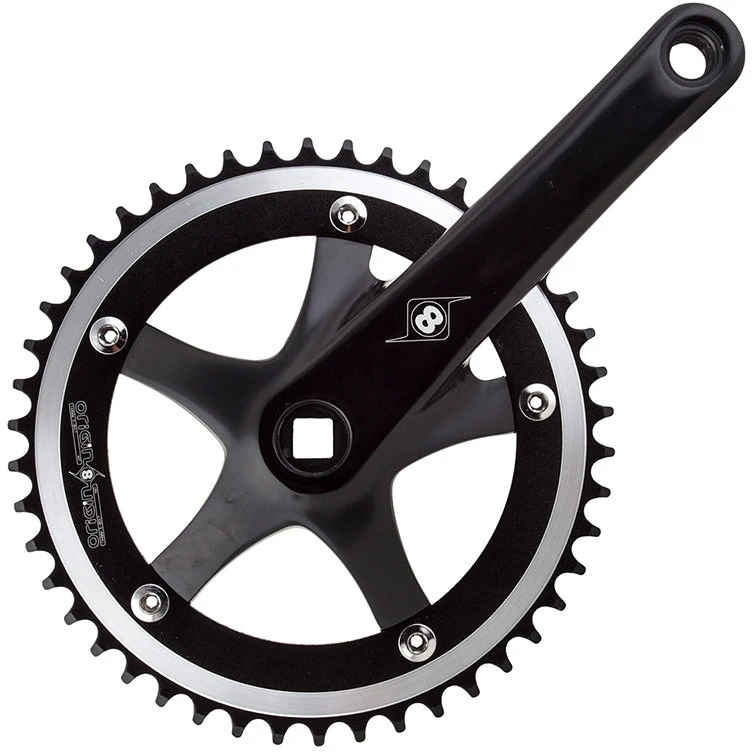 Origin-8’s Trackstar Crankset is made of light and durable forged aluminum and features a stylish machined-aluminum 46-tooth 1/8-inch chainring for excellent power transfer on the road and track.