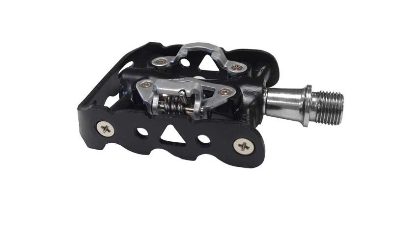 Origin-8’s Ultim8 MTB Single Clipless Pedals feature adjustable SPD-compatible bindings on one side and standard cages on the other: the perfect combination for riders who ride with cleated cycling shoes and also sometimes with regular shoes. With sealed bearings and chromoly axles, the Ultim8’s are durable and practical all-around pedals.