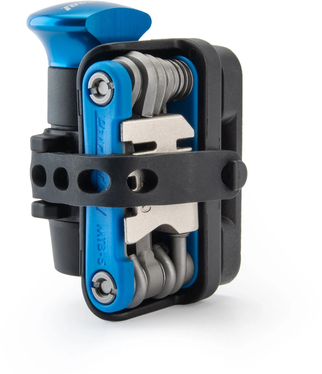 The MTB-5 packs 16 functions into one slim, tough folding multi-tool, making it the ideal companion for any trailside adjustment or emergency fix. Features a full set of hex wrenches and screwdrivers, a T25 Torx-compatible driver, and five specialty tools to aid in common on-the-ride repairs.