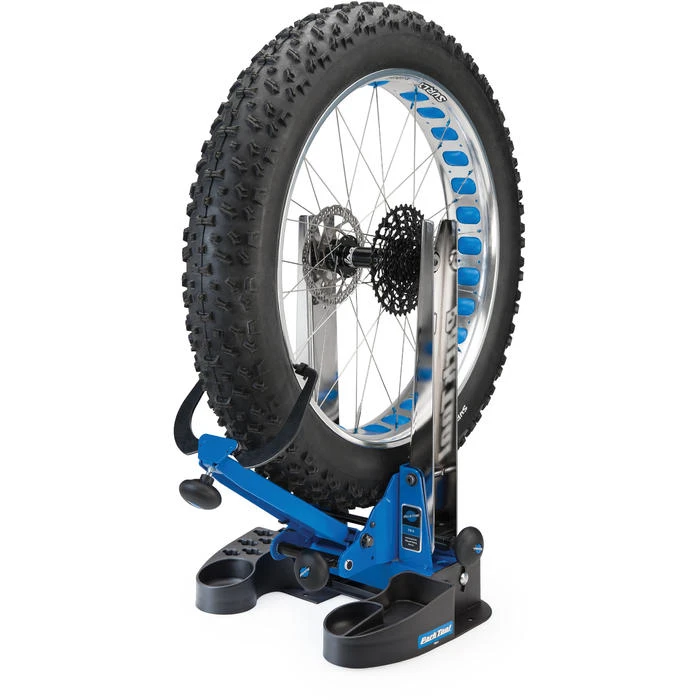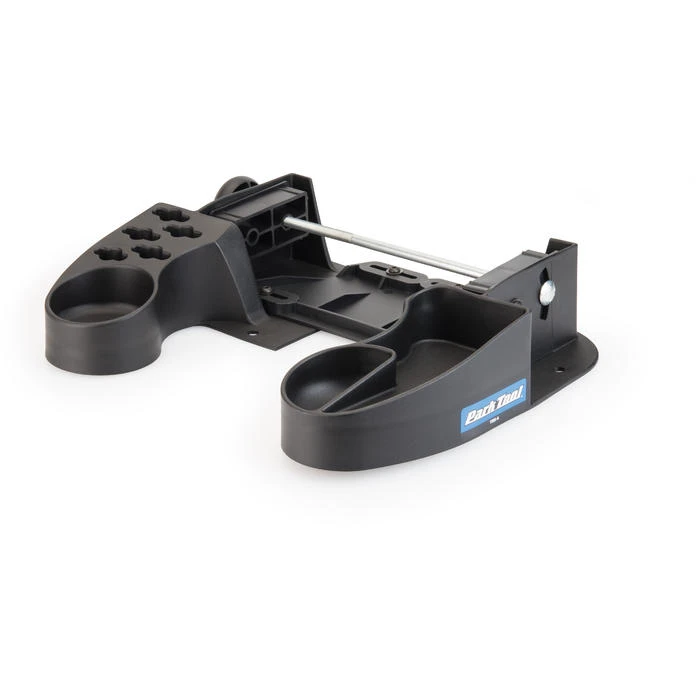 Securely holds any of Park’s TS-2, TS-2.2, and TS-2.2P Professional Wheel Truing Stands and tilts 20 degrees from front to back for comfortable wheel work and sight lines at any bench height. Features a wide, sturdy base, small parts compartments, spoke wrench holders, and is constructed of a durable composite material.