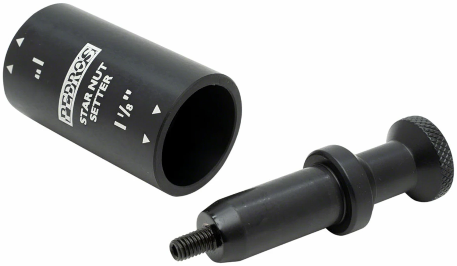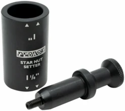 Any fastener with a name like star fangled nut was destined to cause headaches. Most mechanics have battled with troublesome star nuts and know having the right tool makes a world of difference. The Star Nut Setter II was designed to make star nut installation quick and easy. Compatible with 1″ and 1 1/8″ steerer tubes, the Star Nut Setter II features a guide that surrounds the steerer providing perfect alignment and perfect depth every time. The compact size and new lighter weight aluminum guide component are perfect for the tool box while the tool steel driver, with updated ergonomics, ensures lasting performance. Backed by Pedro’s lifetime warranty.