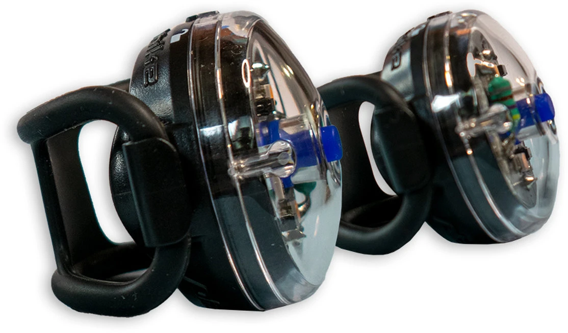 The Button Blinky Amber safety side lights are the perfect way to complete 360 degrees of visibility on your bike. The strong rubber straps are designed to mount to multiple points on your bike, including your fork, stem, top tube, down tube, seat post and rear stays. The little lights have two modes and offer run times of up to 85 hours on replaceable CR2032 batteries. These little lights are brilliant, easy to mount, and cute as a button!