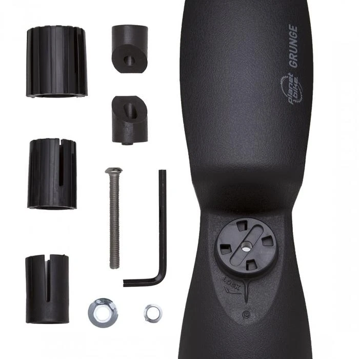 The Grunge front fender was made for your messiest dirt adventures. It’s super durable and provides exceptional coverage from mud, crud and spray. Its 3.4-inch wide profile and innovative steer tube mounting system will work on most suspension and rigid forks.