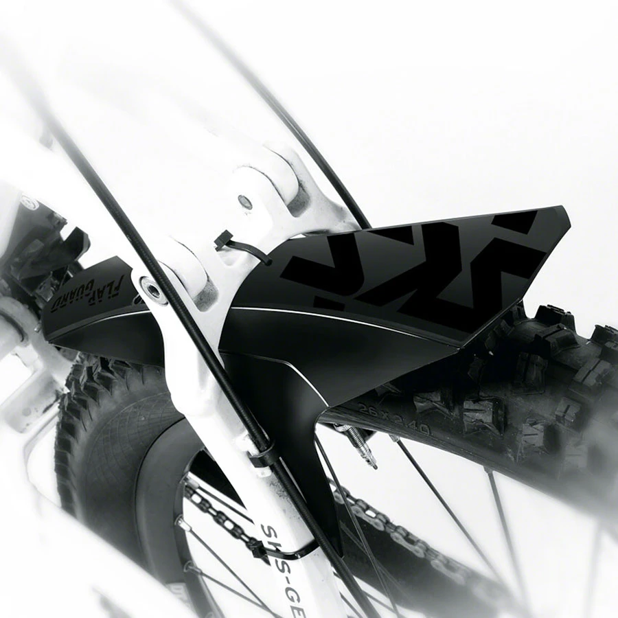 This super-lightweight (45g) and discreet mudguard protects your face (and your fork seals) from mud and water. Made of super-soft material, it fits 26″, 27.5″, and 29″ bikes and is compatible with most forks. Thanks to the included zip ties that wrap around the fork bridge and fork legs, the Flapguard sticks close to your bike even during extremely aggressive riding.