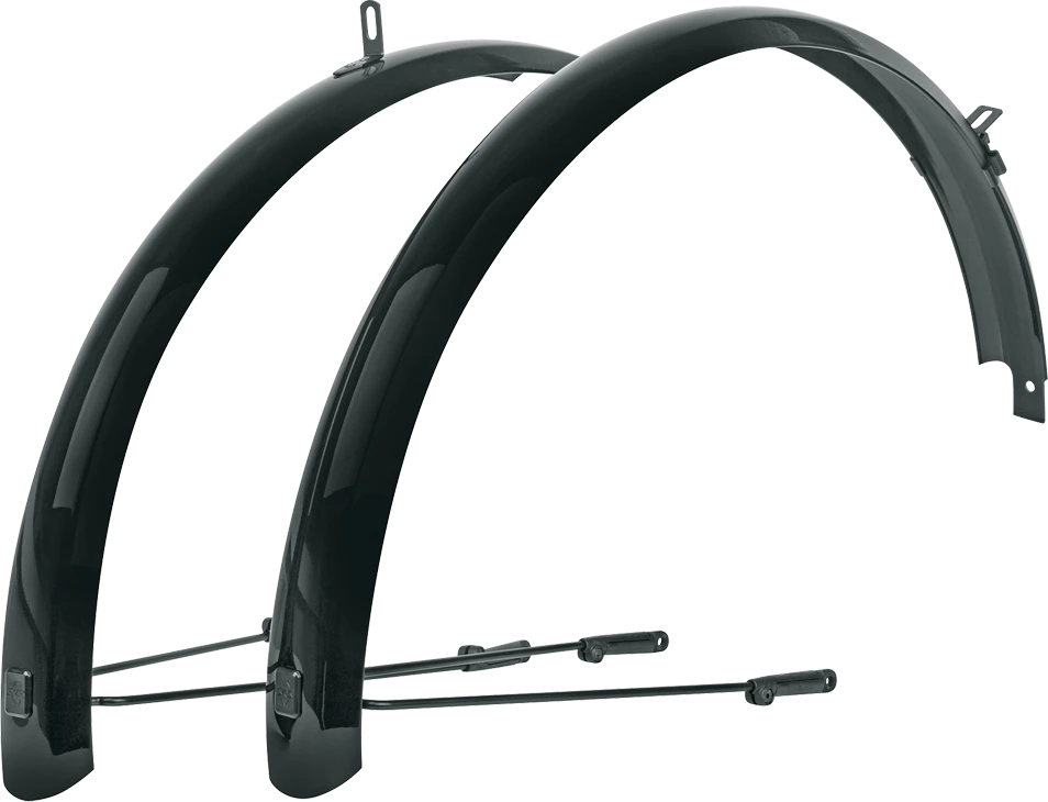 A really brilliant performance! The SKS BLUEMELS BASIC mudguard set not only integrates perfectly on the bike, but also reliably protects against dirt and splash water. Thanks to the flexible sandwich construction, in which extremely fine aluminum strips are embedded in a plastic coating, the fenders are extremely robust, rigid, and protected against corrosion.