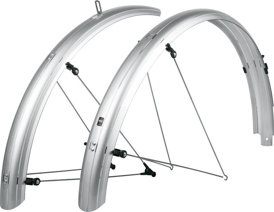A really brilliant performance! The SKS BLUEMELS BASIC mudguard set not only integrates perfectly on the bike, but also reliably protects against dirt and splash water. Thanks to the flexible sandwich construction, in which extremely fine aluminum strips are embedded in a plastic coating, the fenders are extremely robust, rigid, and protected against corrosion.