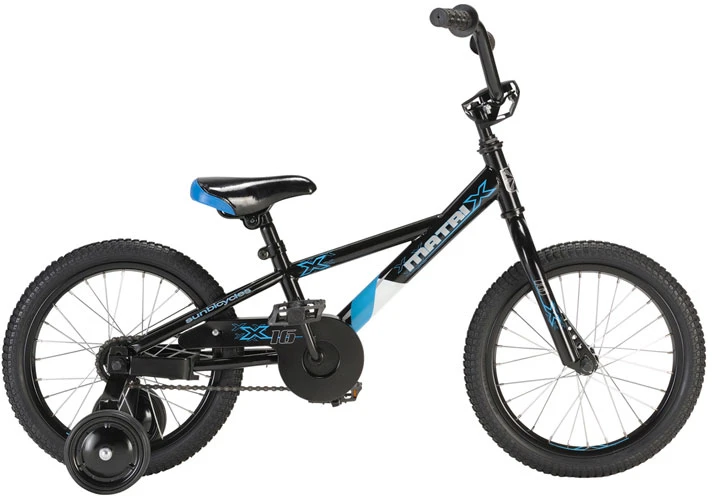 For the child who’s first learning to ride, Sun’s Matrix is an eye-catching, kid-friendly bike that boasts quality, comfort and safety. This bright, fun 16-inch wheeled bike comes with training wheels, a sloped-down top tube for easy dismounting and a rear coaster brake for sure stops.