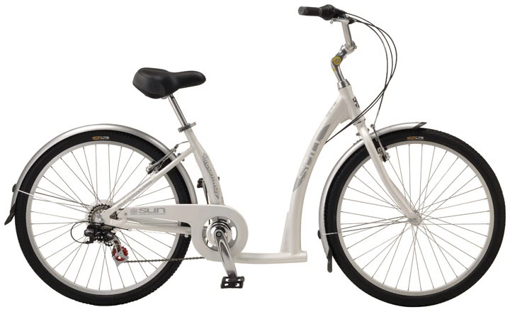 With a super-low step-through frame, Sun makes running errands and cruising around on the Streamway as easy as can be. The aluminum frame and wheels are light and durable for easy pedaling, while Shimano’s 7-speed drivetrain lets you cruise up hills with ease. And, this sweet cruiser offers the luxurious comfort of an upright riding position, a plush saddle and a unique frame design that lets you place both feet flat on the ground for ease and stability.