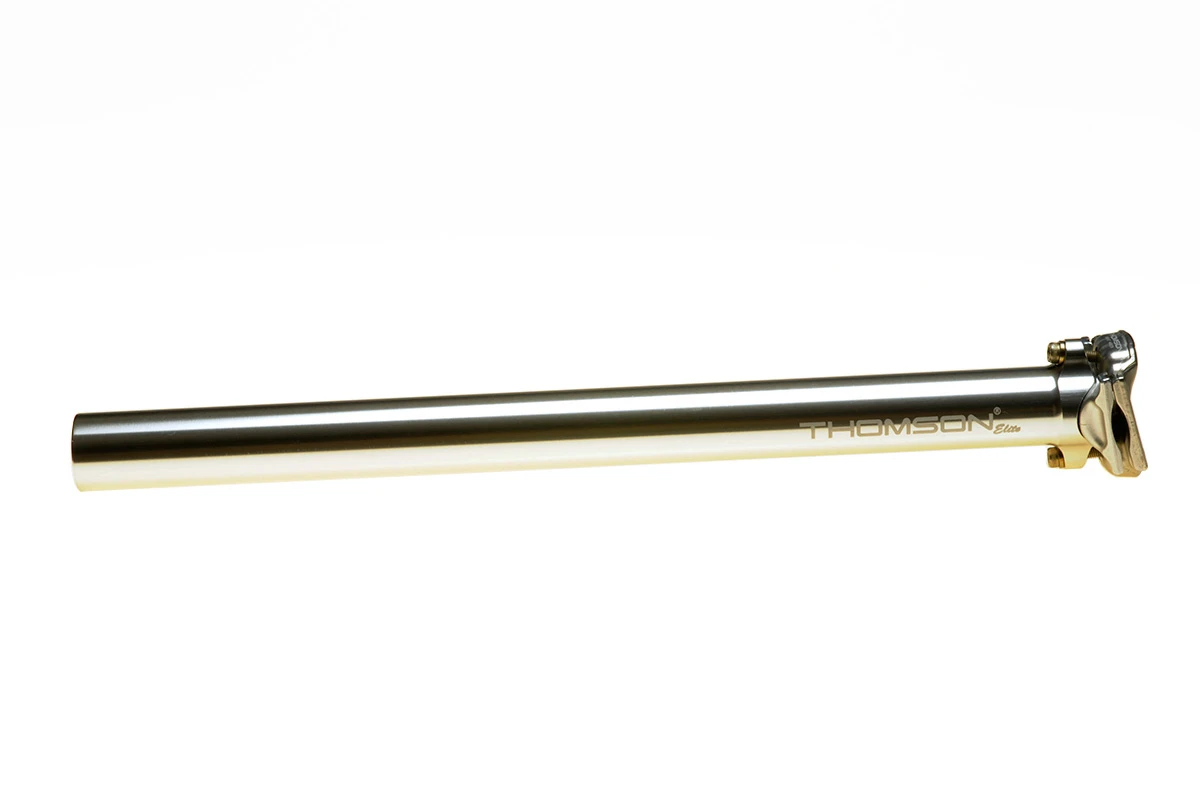 Thomson’s Elite Seatpost is perhaps one of the most recognizable bicycle components in the world and it has earned its reputation as a super-strong, light and reliable beauty. With roots in the aerospace industry, Thomson builds the post with a tough and light 7000-series aluminum body, an elliptical extrusion that adds strength and stiffness, and a head and seat clamp forged and machined from a block of aluminum to eliminate any possible weak areas. Plus, its simple-to-use 2-bolt seat clamp allows speedy, infinite and secure seat angle adjustment from minus 5 degrees to plus 29 degrees. Upgrade your favorite ride to a Thomson seatpost and start riding in style.