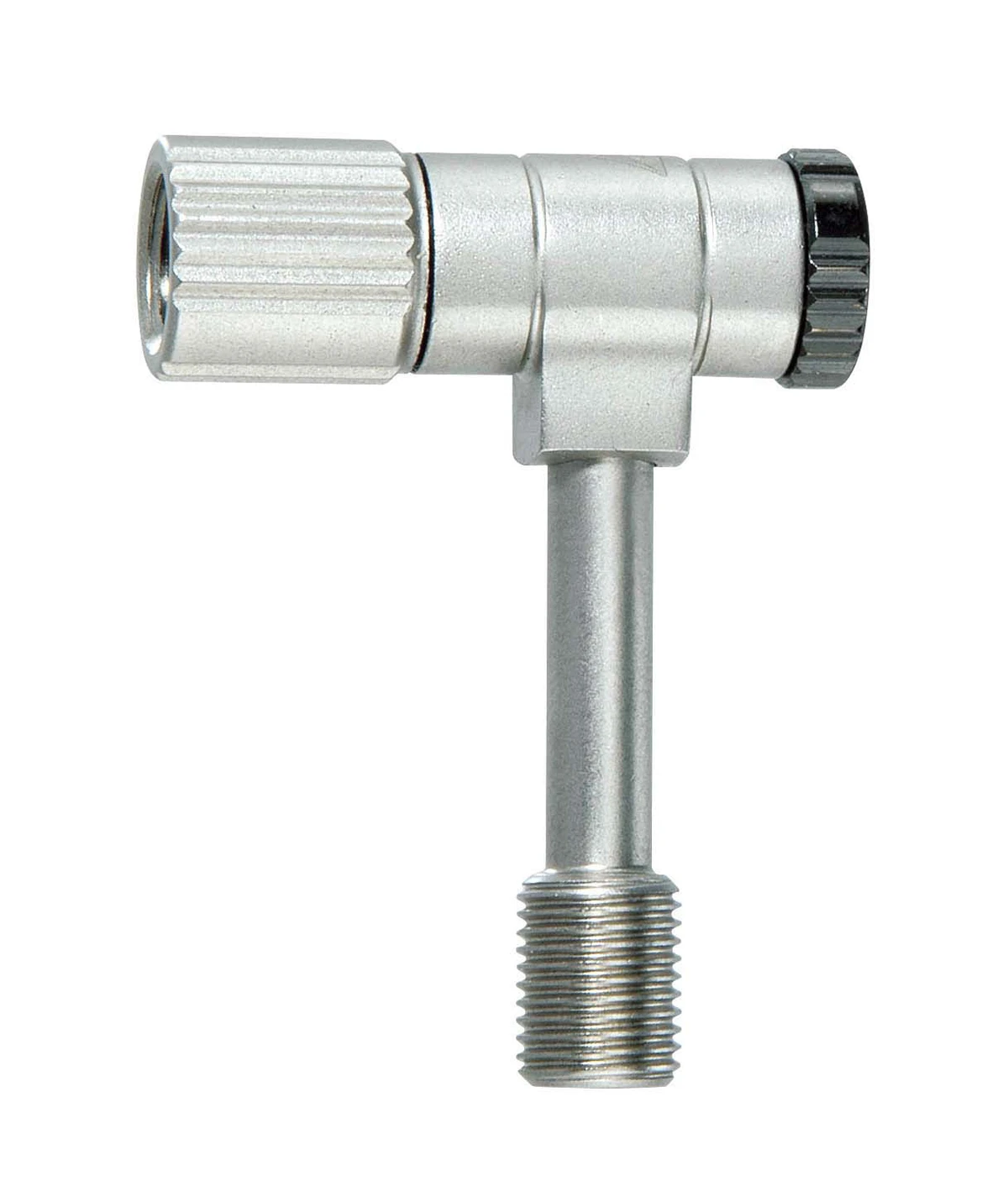 A Schrader valve adapter allows using the JoeBlow Ace floor pump for quickly pumping forks and rear shocks. Built-in air release knob allows fine tuning air pressure.