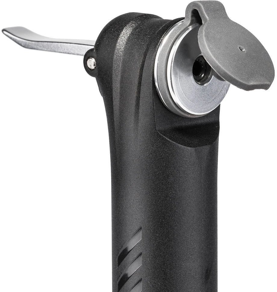 The longest and slimmest version in the DA pump series fills high-pressure road tires fast. Dual-Action (DA) doubles volume with each stroke and inflates tires to 120 psi / 8 bar. Integrated dust cap keeps pump head clean and thumb lock lever insures air-tight seal.