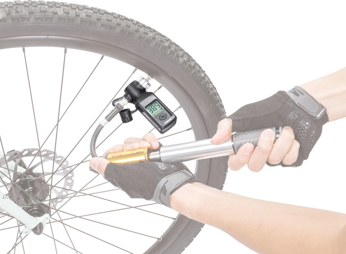 Easy-to-read digital gauge can be attached to a pump or used alone and provides accurate pressure readings up to 300psi / 20.7bar. Rotating head works with Presta, Schrader or Dunlop valves on bike / motorcycle / car tires, forks or shocks while the Thumb Lock lever ensures an airtight seal. The air release button allows fine tuning pressure.