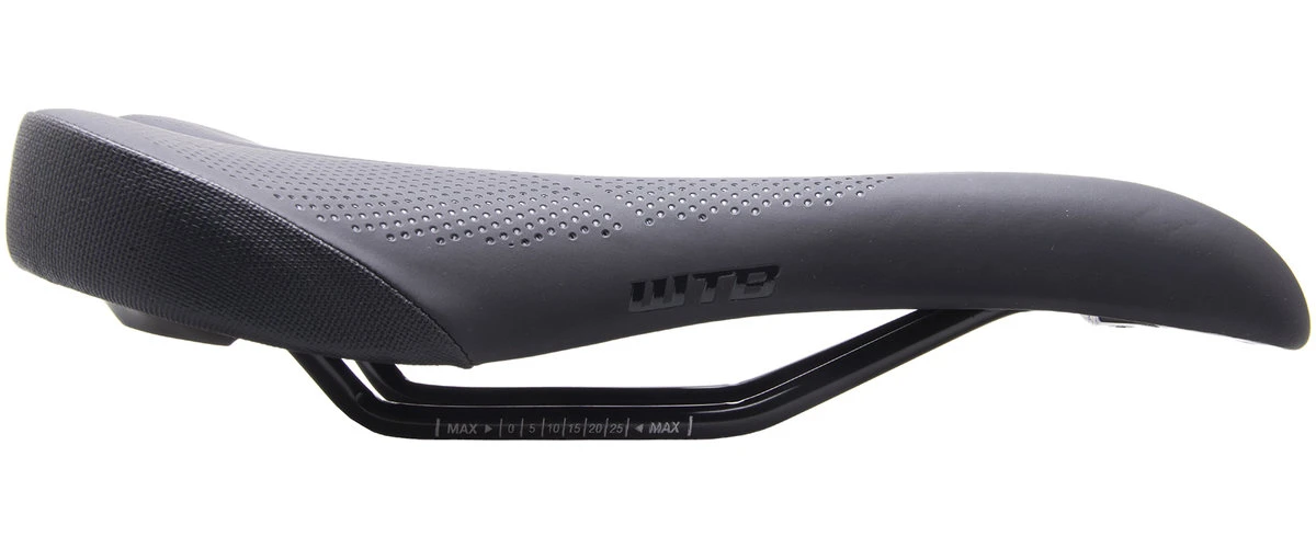 – Thick padding and a swooped tail allow riders to lock in their ideal position for power and comfort